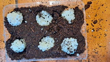 Tous les 15 jours, il est mis dans les bacs des boites de pontes, pendant ce temps on arrête l’alimentation et l’arrosage.