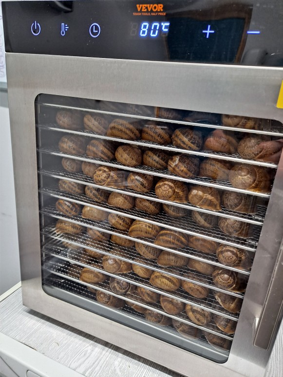 Le séchage des coquilles est obtenu par un passage au déshydrateur pendant 2 heures