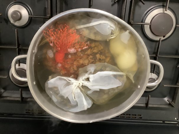 Une fois les chairs bien rincées, elles sont plongées dans l’eau bouillante pendant 20 minutes. Cette étape permet de les cuire légèrement et de les rendre plus tendres.